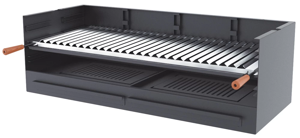 – Parrilla de Acero Inoxidable regulable a 3 alturas.