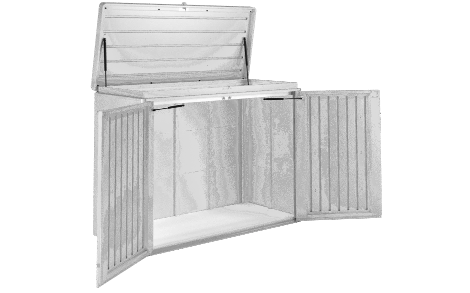 El equipamiento básico incluye un práctico soporte para la tapa de un cubo de basura. Las paredes laterales y las puertas del tablero son de chapa de acero galvanizada en caliente y esmaltada al horno de poliamida. La tapa lisa está hecha de aluminio con recubrimiento de polvo. Las puertas y la tapa se pueden abrir cómodamente gracias al resorte de presión de gas. El tablero puede cerrarse de forma segura con la cerradura de cilindro de palanca giratoria. La ventilación integrada invisible evita los malos olores. Con la ayuda de los numerosos accesorios, el equipamiento del HighBoard se puede adaptar individualmente a sus necesidades.