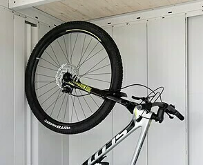 El soporte de pared bikeMax de Biohort podrás guardar tus bicicletas de hasta 29 pulgadas ahorrando espacio. El gancho de suspensión también es ajustable en altura (8 posiciones). Además, viene integrada una argolla de cierre para los candados de las bicicletas.
