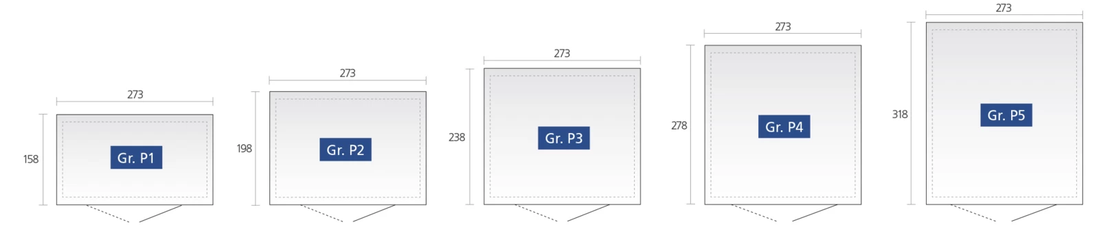 – Funcionalidad óptima: la puerta también puede instalarse en el panel lateral (puerta estándar a partir del tamaño P2; puertas dobles a partir del tamaño P4)