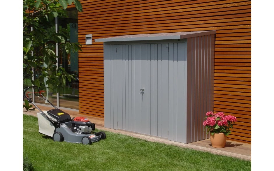 El WoodStock de Biohort si es polifacético. úselo como cobertizo para leña, garaje para la cortacésped o armario para los aparatos de jardinería. Se trata del primer cobertizo para leña que se adapta a la arquitectura moderna y que responde de forma práctica a las demandas de sus usuarios.