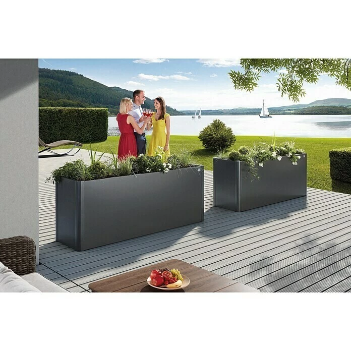 El huerto Belvedere de Biohort en gris oscuro metálico es ideal para plantas, verduras y hierbas. Gracias al fondo intermedio que se puede insertar individualmente, se reduce el volumen de tierra necesario y se garantiza una jardinería eficaz. Las paredes de chapa de acero galvanizada en caliente y esmaltada con poliamida para estufas están unidas por robustos esquineros de aluminio con carriles guía integrados. Gracias a los materiales de alta calidad, el huerto no se corroe y no es necesaria ninguna protección adicional contra la humedad. Con la ayuda de las prácticas paredes deslizantes, el huerto de Biohort se puede llenar o vaciar muy rápidamente. Un tejido de fibra de vidrio integrado protege las semillas de los roedores.