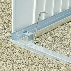 Con el marco de suelo, la caseta tiene suficiente estabilidad incluso cuando la colocas sobre un terreno irregular (por ejemplo el prado) sin cimientos. Los anclajes incluidos en el volumen de suministro garantizan más seguridad en caso de tormentas. El marco de suelo tiene una sección transversal.