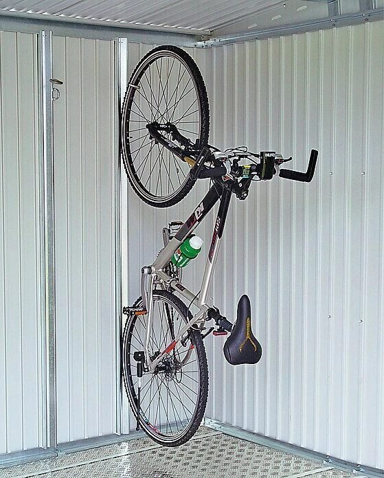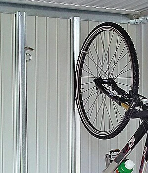 Los soportes para bicicletas BikeMax (2 piezas) de Biohort son una práctica adición a la caseta AvantGarde o HighLine. Son ajustables en altura en 6 posiciones y adecuados para bicicletas de hasta 29 pulgadas. Un ojo de cierre para cerraduras de bicicletas está integrado.