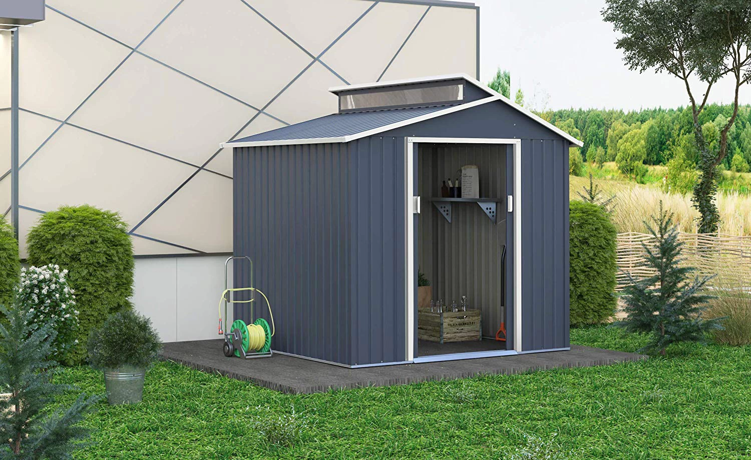 En nuestro catálogo disponemos de casetas de jardín metálicas en varios colores (verde, marrón, gris…) y dimensiones (desde los 2,5 hasta casi 8 metros cuadrados) para satisfacer todas las necesidades. Sus diseños son muy elegantes y atractivos, pues entendemos que el exterior de un hogar también tiene que verse tan bonito y acogedor como el interior.