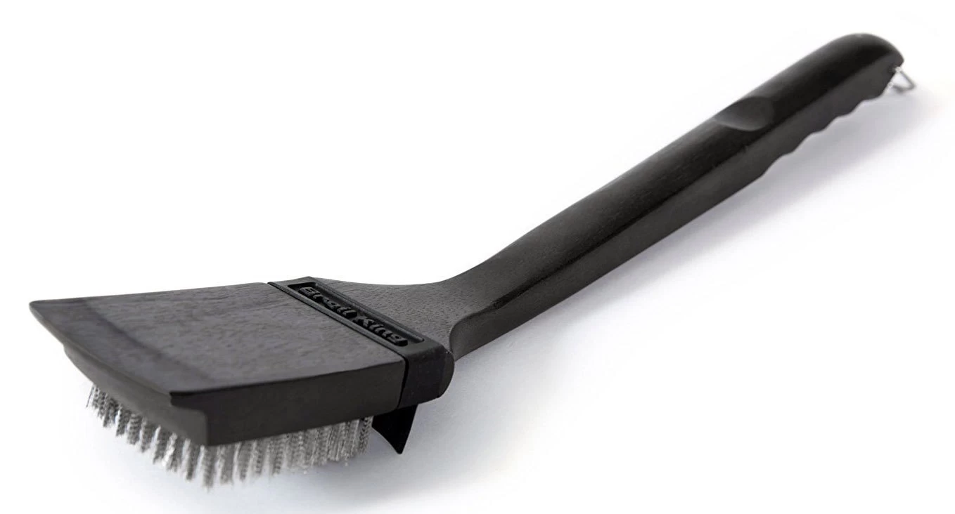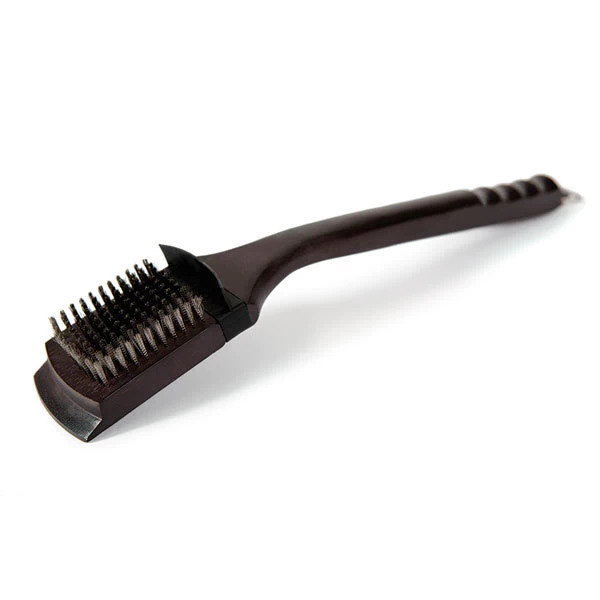 Diseñado con un mango de agarre ergonómico y cerdas de Acero Inoxidable de gran resistencia. El rascador de madera integrado no dañará rejillas recubiertas de porcelana o parrillas de calentamiento.