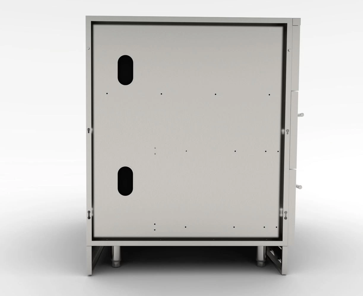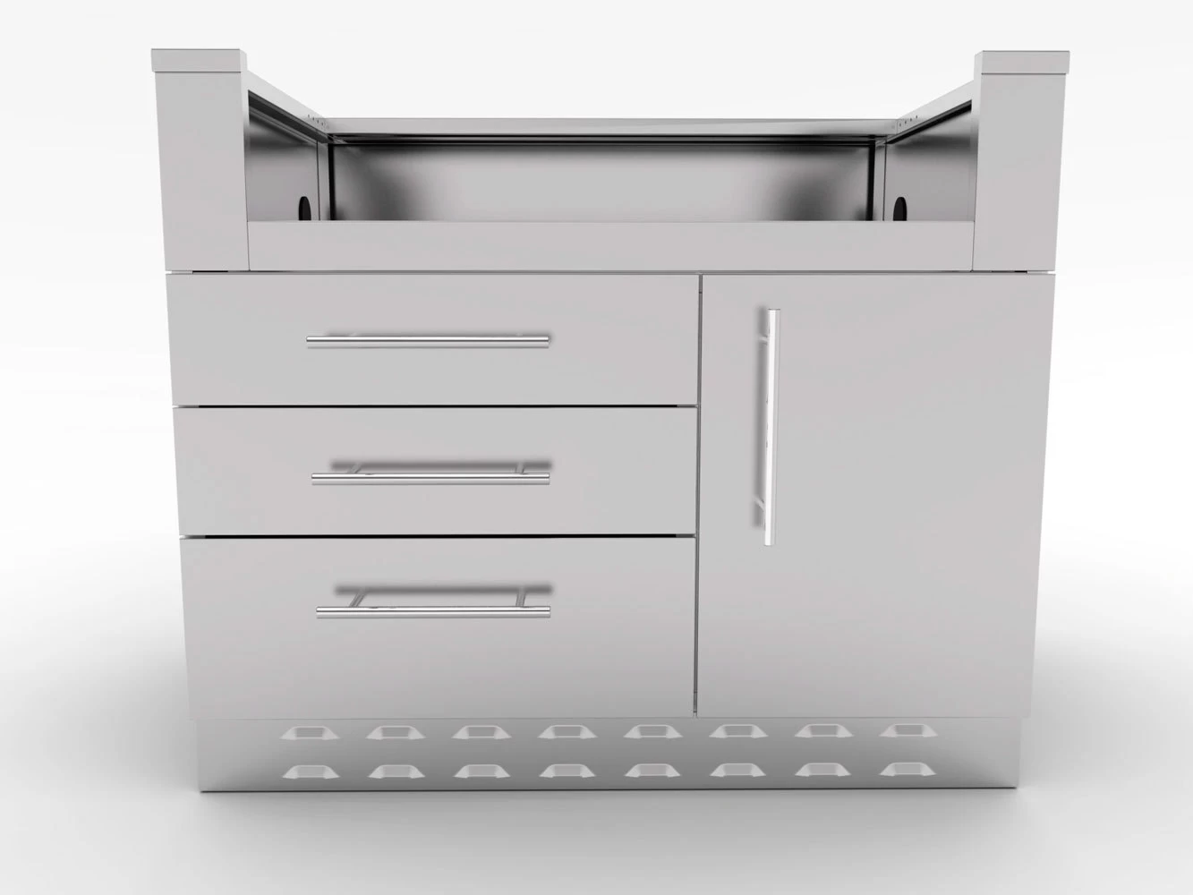 El módulo Inox. de 102 cm. para barbacoa de gas, está construido enteramente de Acero Inoxidable grado 304 del calibre 16 y 18. Además de servir para las barbacoas Sunstone de 4 quemadores, este módulo también está diseñado para alojar múltiples barbacoas de gas de otras marcas del mercado. El lado derecho del módulo incluye una puerta con alojamiento para la botella de gas o cubo de basura ya que el estante inferior es extraible mientras que en el lado izquierdo tiene 3 cajones grandes y amplios, ideal para guardar todos nuestros utensilios, condimentos, etc.