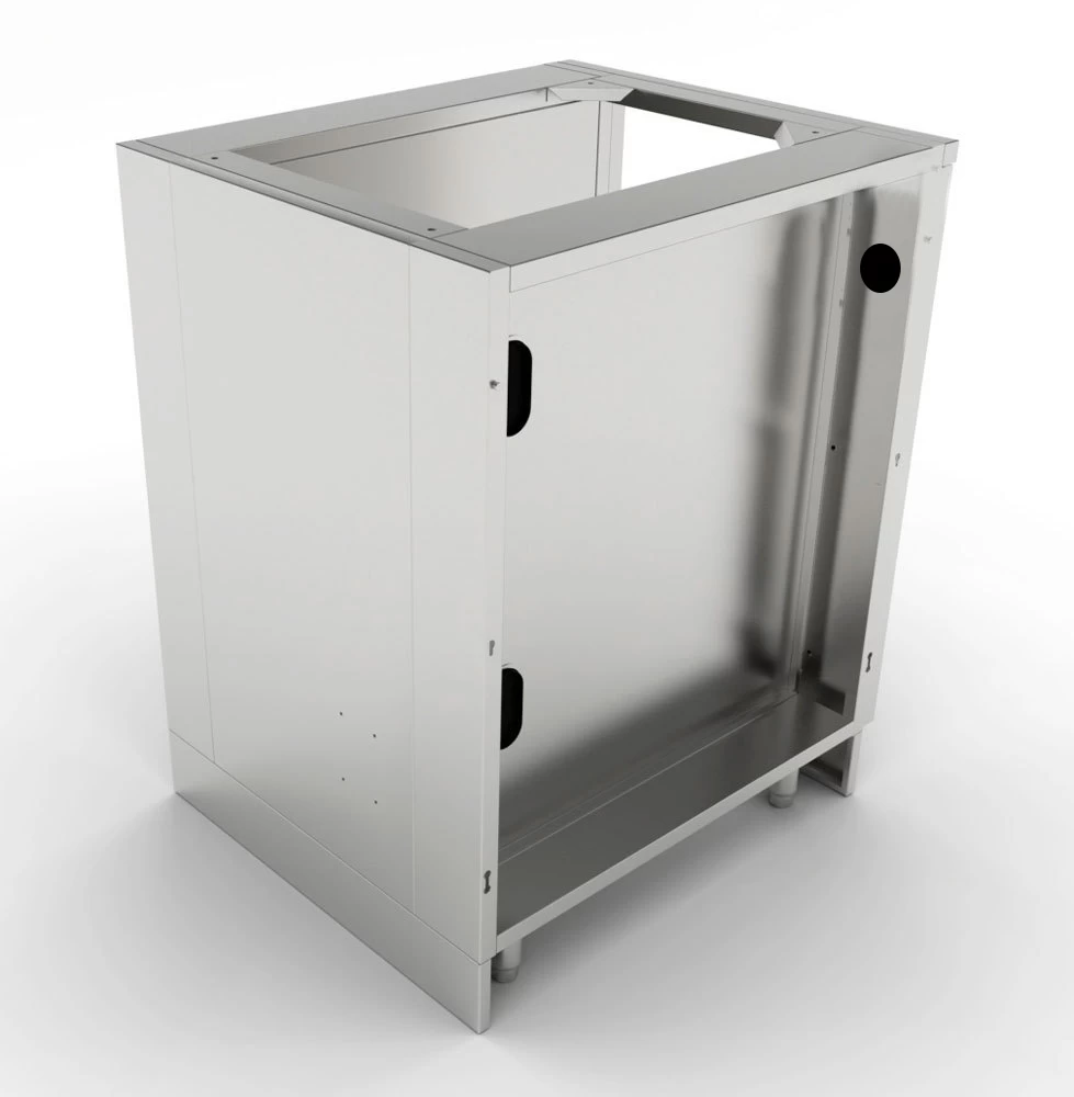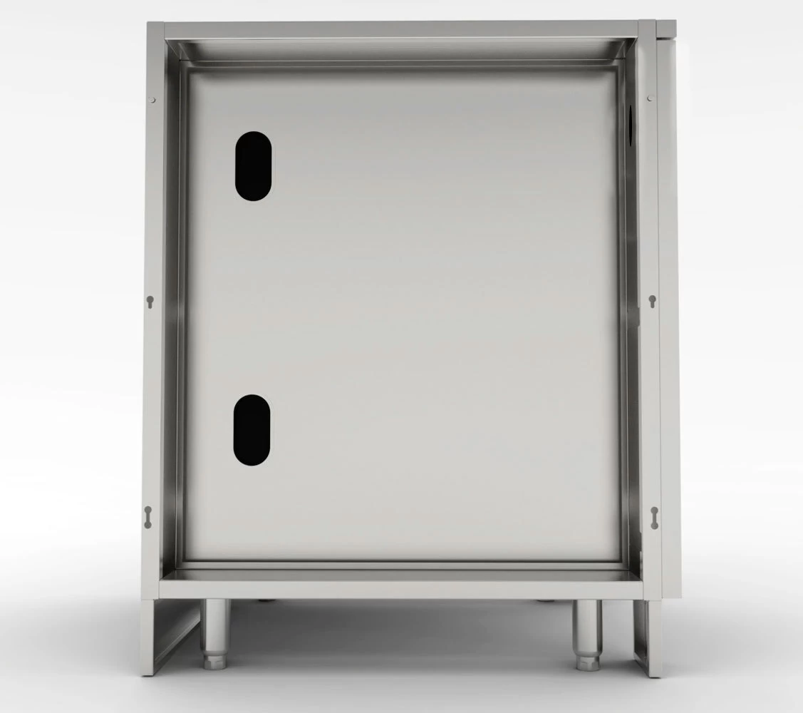 El módulo Inox. de Sunstone para Nevera 90 lt, está construido enteramente de Acero Inoxidable grado 304 del calibre 16 y 18. Está diseñado para poder insertar neveras o máquinas de hielo de hasta 38 cm. de ancho, aislándolas con los paneles laterales y el panel trasero, mientras que está abierta en la base y el frontal. El panel frontal izquierdo tiene un agujero para instalar un enchufe o un interruptor (se vende por separado).