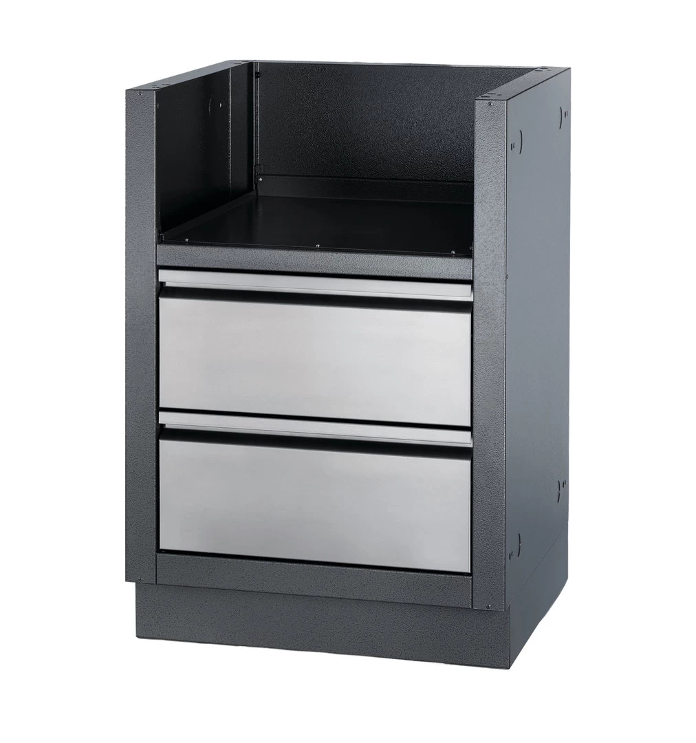La cocina exterior perfecta cuenta con mucho espacio de almacenamiento y un acabado duradero que resistirá a los elementos. El módulo de tres cajones Oasis tiene los frontales de los cajones de Acero Inoxidable con una gran cantidad de almacenamiento para sus accesorios Napoleon y especias para asar.