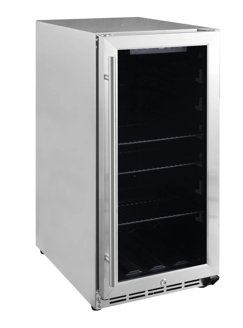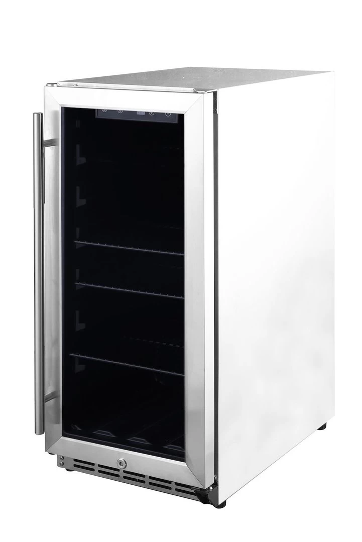 Fabricado en Acero Inoxidable grado 304, protegerá a nuestra nevera de la corrosión. La parte trasera está completamente cerrada para evitar que entre agua, polvo, insectos, etc. Sistema de refrigeración No Frost (no genera escarcha), luz interior, tres estantes de rejilla multiusos y un estante inferior para botellas de vino.