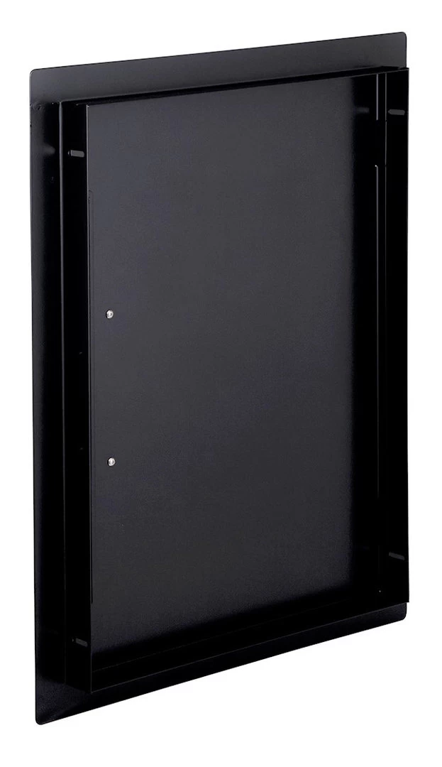 Las puertas verticales grandes están fabricadas en Acero Inoxidable esmaltado en negro y con el tirador de acero pulido. Las puertas una vez instaldas quedan completamente a ras, así que es perfecta para diferentes tipos de superfices como piedra, cemento, etc. Además el marco de la puerta viene pretaladrado para una fácil instalación.