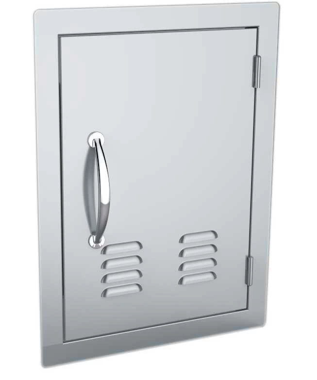 Las puertas verticales ventiladas están fabricadas con el mismo acabado que las barbacoas Sunstone y con el tirador de acero pulido. Las puertas una vez instaladas quedan completamente a ras, así que es perfecta para diferentes tipos de superfices como piedra, cemento, etc. Además el marco de la puerta viene pretaladrado para una fácil instalación.